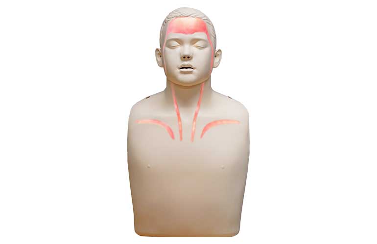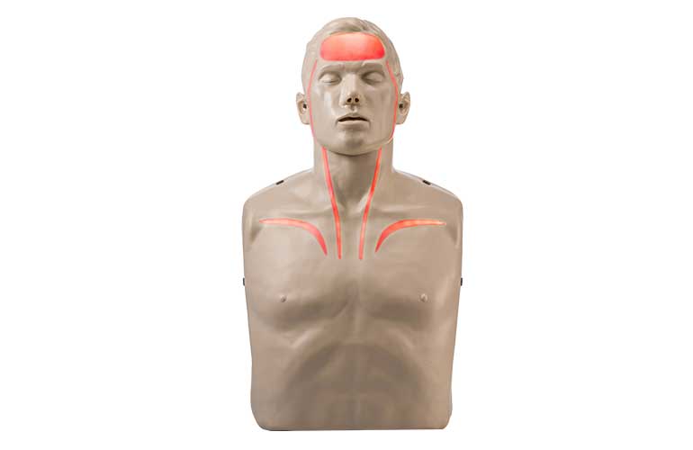 Die Brayden Manikin-LED Trainingspuppe zeigt mit weissen LEDs den simulierten Blutfluss vom Herzen zum Gehirn – jedoch nur bei korrekter Drucktiefe, -geschwindigkeit und Entlastung. Diese innovative Funktion vermittelt eindrucksvoll die Bedeutung der Wiederbelebung und sorgt für einen bleibenden AHA-Effekt.- Funktionen: