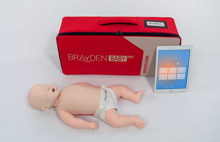 Die Brayden Manikin Baby Pro bietet visuelles Echtzeit-CPR-Feedback über LEDs, Audio und die iOS-App „Brayden Online“. Alle CPR-Daten werden aufgezeichnet, um eine detaillierte Trainingsauswertung und Optimierung der Leistung zu ermöglichen.Dank Pulsfunktion für Säuglinge und identischem Aufbau wie die Brayden Baby ist sie vielseitig einsetzbar und ideal für klinische sowie präklinische Übungen.